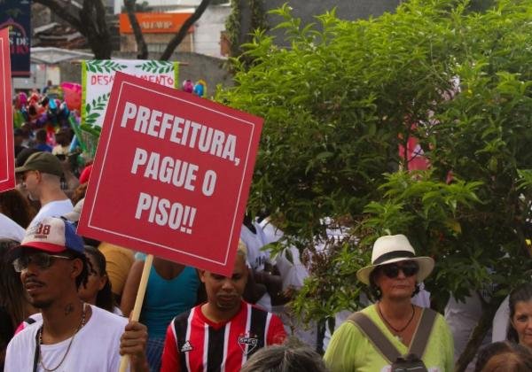Os professores municipais que lutam pelo pagamento do piso salarial, chegaram nesta manhã, ao bairro da Lapinha, em Salvador, com muitos cartazes, inclusive enfatizando à Operação Overclean da Polícia Federal, que apura de forma minuciosa a organização apontada por cometer fraudes licitatórias, além do desvio de emendas parlamentares.