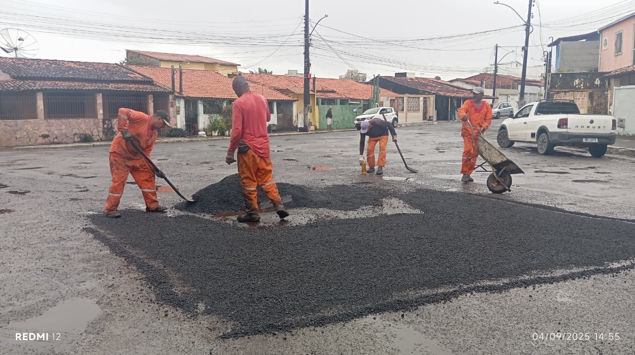 Nos últimos dias, os serviços se concentraram em diversos bairros e áreas estratégicas, como Urupiara, Urbis III (rua do Catu), entrada da rua dos Artistas, rua da Natural Gurt (Leovigildo Reis), 2 de Julho, Pinto Aguiar, Parque Santa Maria e entorno do Hospital Materno. Nesses locais, foram executadas ações de drenagem, reparos viários e utilização do caminhão “vacall”, veículo especializado em sucção de resíduos e desobstrução de canais. Nesta sexta-feira (5), as frentes de trabalho atuam na avenida Silva, Praça Kennedy e região do Pirinel.