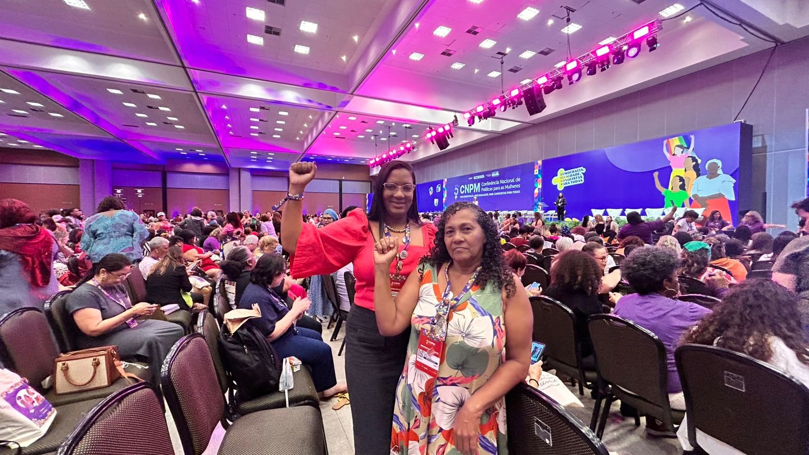 A Prefeitura de Alagoinhas, representada pela Secretaria de Desenvolvimento Social (Sedes), está participando da 5ª Conferência Nacional de Políticas para as Mulheres (5ª CNPM), que ocorre de 29 de setembro a 1º de outubro no Centro Internacional de Convenções do Brasil (CICB), em Brasília (DF). O município e a região do Litoral Norte e Agreste Baiano estão sendo representados pela diretora de Políticas para Mulheres e Direitos Humanos da Sedes, Elbênia Ramos, e pela representante da sociedade civil, Elisete Portugal.