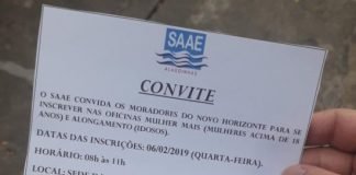 SAAE convida moradores de Novo Horizonte e Alagoinhas IV para inscrições...