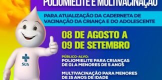 Campanhas de vacinação contra poliomielite e multivacinação acontecem de 08 de...