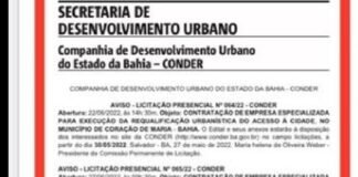 Conder publica licitação para execução de obras de contenção de encostas...