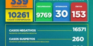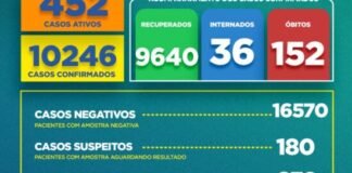 Boletim Epidemiológico desta segunda-feira(22) aponta 452 casos ativos da covid-19 em...