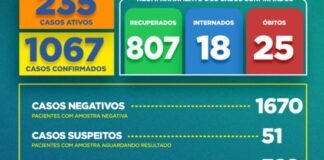 Boletim COVID-19: Confira a atualização deste sábado (18) para os casos...
