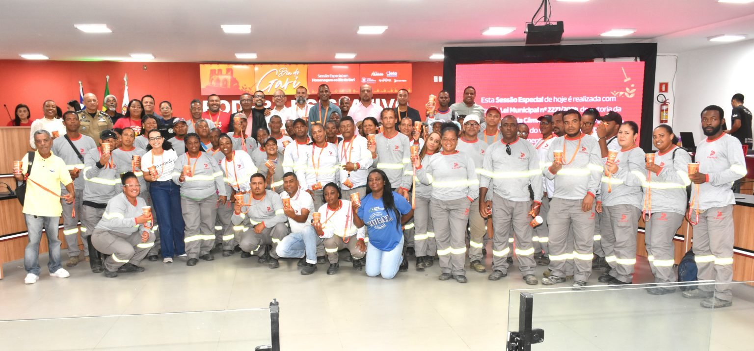 Na manhã desta quarta-feira (22) foi realizada na Câmara Municipal uma sessão especial em alusão ao Dia do Gari, com o objetivo de homenagear esta classe trabalhadora a partir do lema “O essencial não pode ser invisível”. O evento de autoria dos vereadores Cláudio Abiúde (Republicanos) e José Cleto (Cleto da Banana – PSD), em parceria com a Prefeitura de Alagoinhas e a ID Serviços, reuniu diversos representantes do segmento e do poder público municipal.