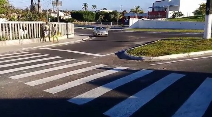 Uma faixa de pedestres pintada em uma curva tem causado transtornos à transeuntes em Alagoinhas.