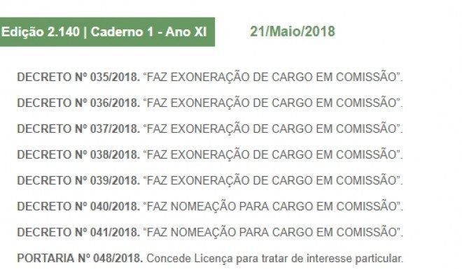Os decretos foram publicados na última segunda-feira (21), exonerando diversos servidores públicos em cargos comissionado da Secretaria de Educação do município.