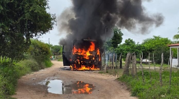 Um ônibus escolar pegou fogo na manhã desta sexta-feira (6) na zona rural de Barrocas, no interior da Bahia. As crianças que estavam no veículo conseguiram sair a tempo com a ajuda do motorista e ninguém ficou ferido.