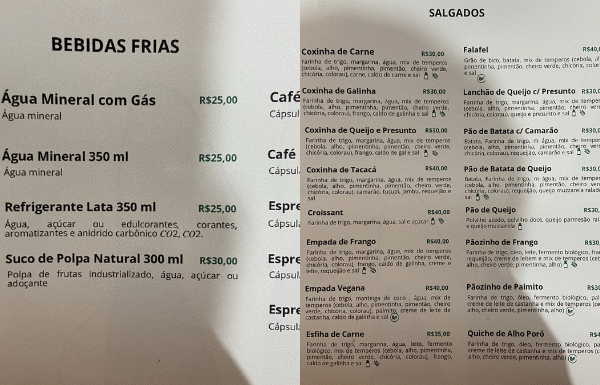 O cardápio do espaço de alimentação do Mídia Center (Nanay Café), montado para a COP30 em Belém, tem provocado comentários entre participantes pela elevada tabela de preços.