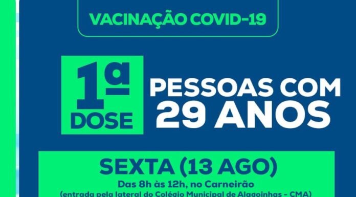 A cidade de Alagoinhas avança na campanha de vacinação contra a covid-19. Amanhã, sexta-feira(13), a secretaria municipal de saúde(SESAU) começará a vacinar as pessoas a partir de 29 anos.