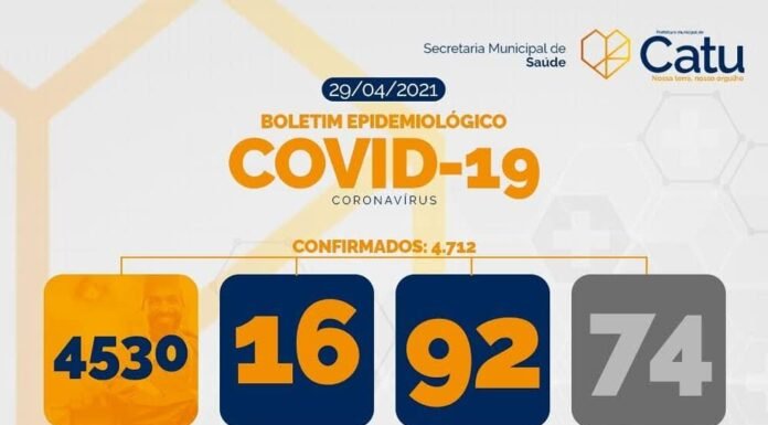 O Boletim Epidemiológico de Catu, desta quarta-feira(28), registrou 04 novos casos da covid-19 no município..