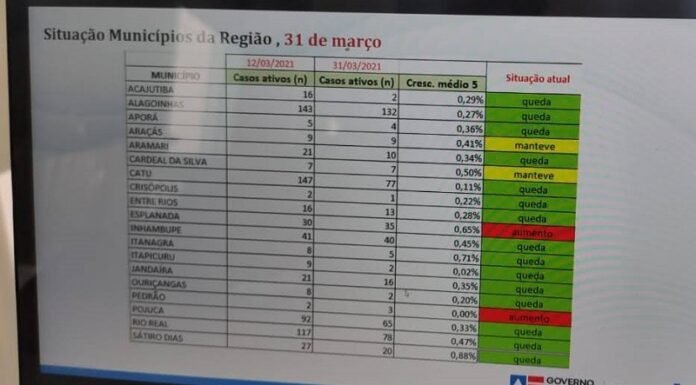 A cidade de Alagoinhas está entre os município da região que apresentam diminuição do número de infectados pela covid-19. O site News Infoco teve acesso à planilha da Secretaria Estadual de Saúde que avalia o avanço da doença no...