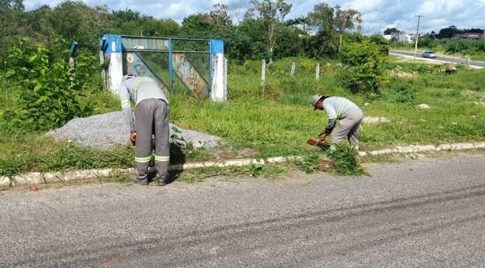 Uma equipe especial da Secretaria de Manutenção (Seman), com reforço de agentes, realizou ações de limpeza, levantamento de areia, sacheamento, roçagem e pintura de guias na região da Fonte dos Padres.