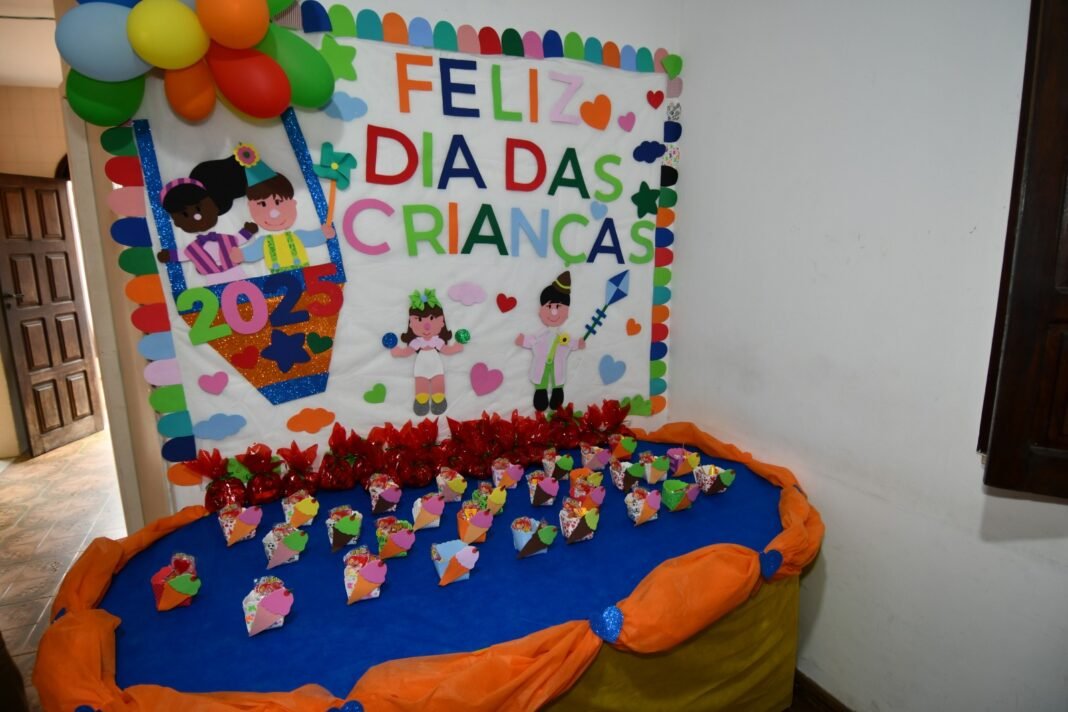 A programação envolveu momentos de música, brincadeiras antigas (como amarelinha e vareta), dinâmicas educativas, desenhos, pinturas de telas e pinturas faciais.