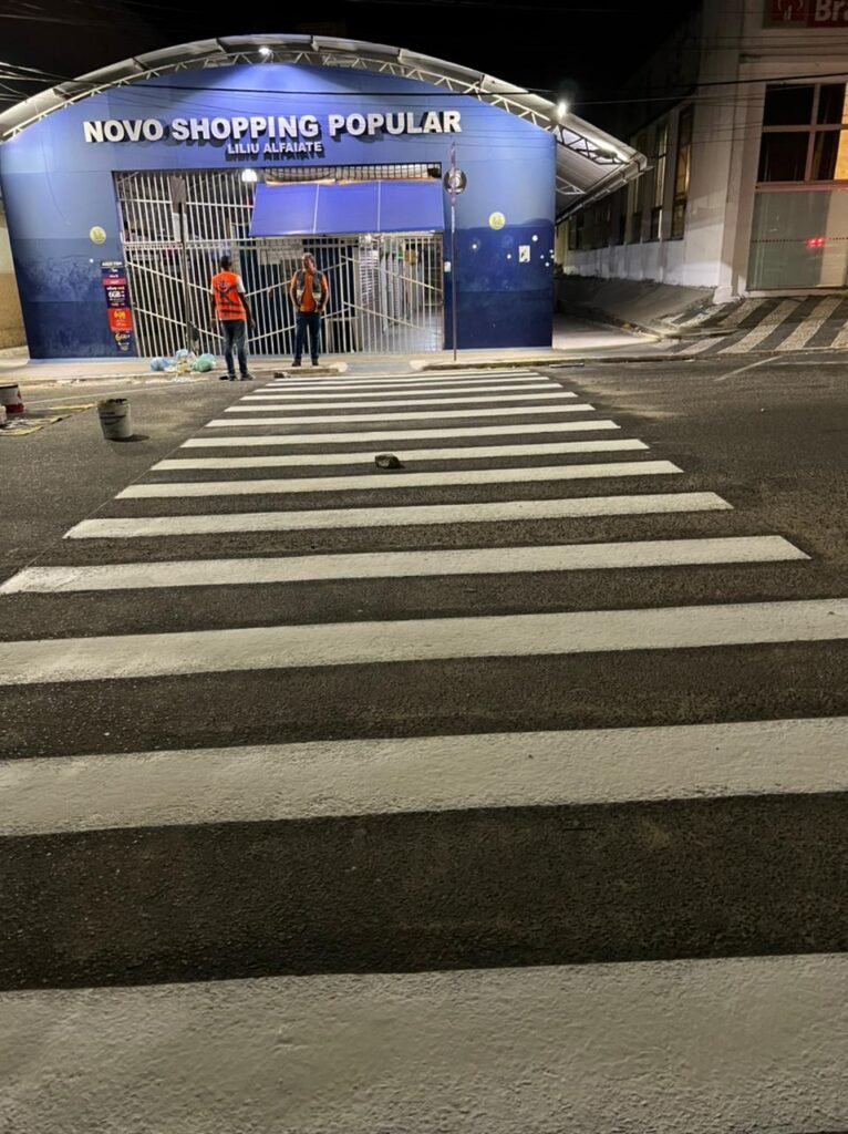 Foram renovadas as faixas localizadas em frente à Igreja Matriz (próximo à Magazine Luiza), ao lado Banco do Brasil (com frente para os Correios), na frente do Banco do Brasil, em frente ao Shopping Popular, no acesso à Caixa Econômica, entre o G Barbosa e a Real Calçados e no Terminal Coletivo, dos dois lados.
