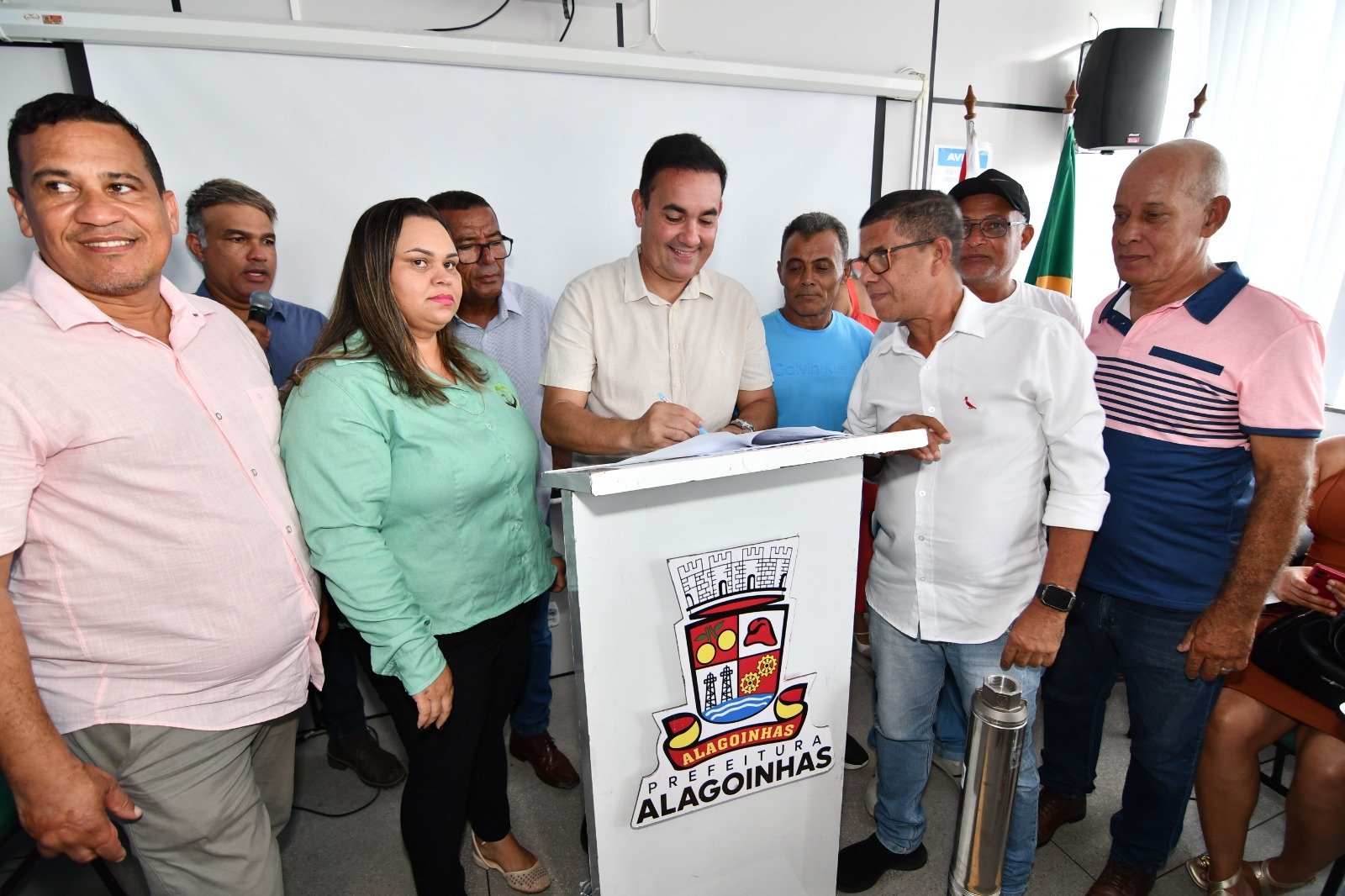 O prefeito de Alagoinhas, Gustavo Carmo, assinou, na manhã desta terça-feira, 10, no auditório da Secretaria de Desenvolvimento Rural e Meio Ambiente (SDRA), o termo de análise de solo e entregou duas bombas submersas, dois maniveiros e sementes de melancia à Cooperativa dos Agricultores Familiares e Economia Solidária do Litoral Norte e Agreste de Alagoinhas (Coopama) e Acafaribe. O objetivo da iniciativa é melhorar a segurança e viabilizar o escoamento da produção tanto para os mercados institucionais quanto práticos.