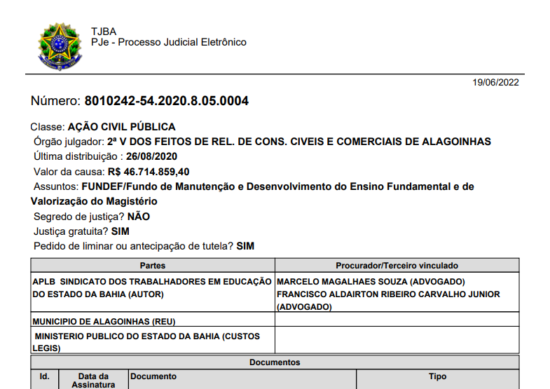 Após uma longa espera, os profissionais da área da educação do município de Alagoinhas finalmente receberão os valores referentes aos precatórios do FUNDEF. O site News Infoco teve acesso a decisão da juiza da 2ª Vara dos Feitos de Relações de Consumo Civeis e Comerciais de Alagoinhas, Carmelita de Arruda Miranda, datada da última sexta-feira(17), que homologou o acordo entre a prefeitura e a APLB-Sindicato.