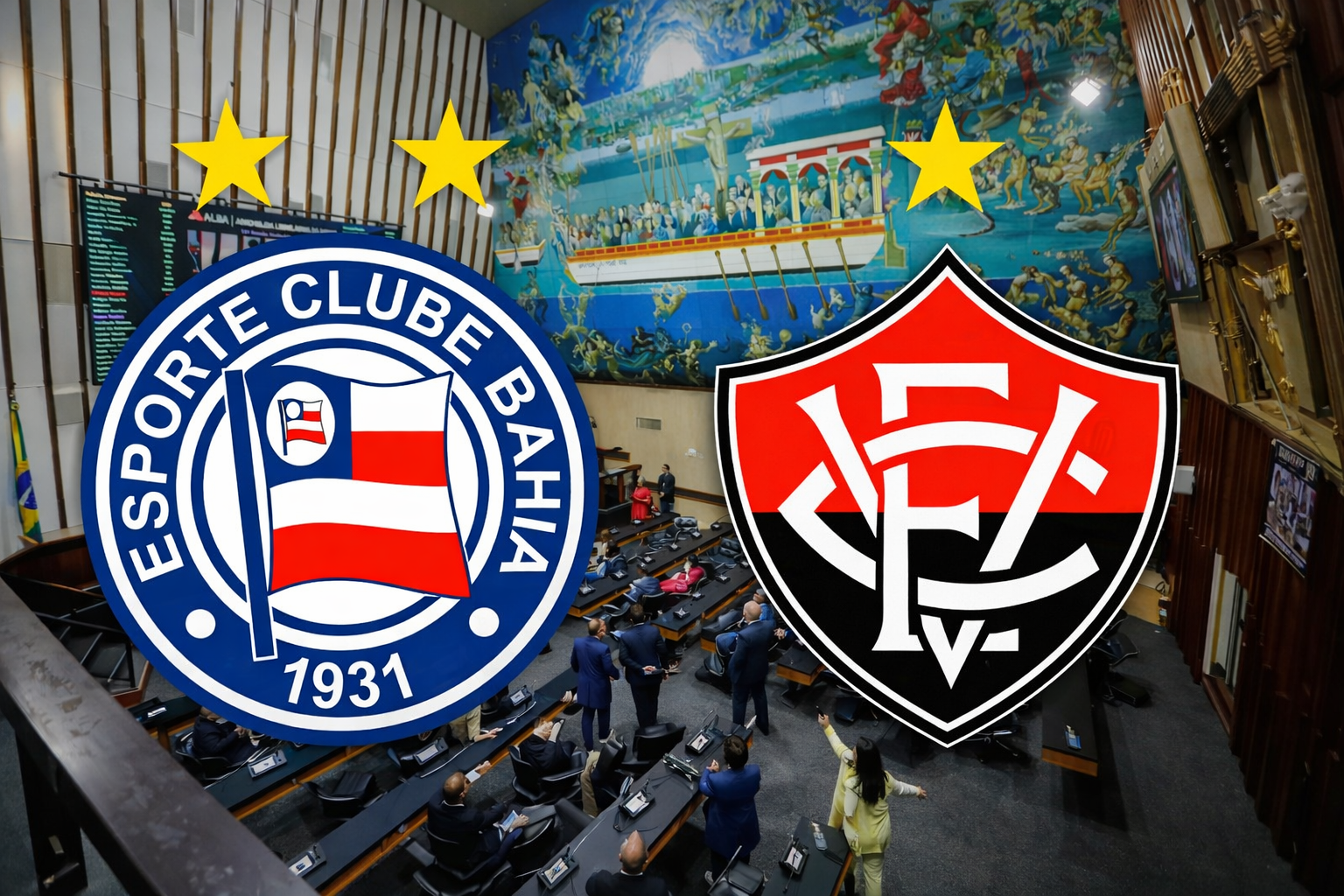 Mas é no Legislativo que o Bahia impõe sua vantagem. Na Câmara Municipal de Salvador, a vantagem tricolor é arrasadora. De um total de 43 vereadores, 40 foram consultados, sendo 26 tricolores, contra 11 rubro-negros. Dois parlamentares declararam outros clubes: Randerson Leal (Podemos) é Flamengo-RJ, enquanto André Fraga (PV) é Botafogo-RJ. Cris Correia (PSDB) afirmou não ter time.