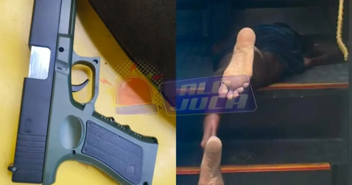As imagens enviadas para o site mostraram vários passageiros correndo após os disparos de arma de fogo. A Polícia Militar foi acionada e apreendeu o simulacro.