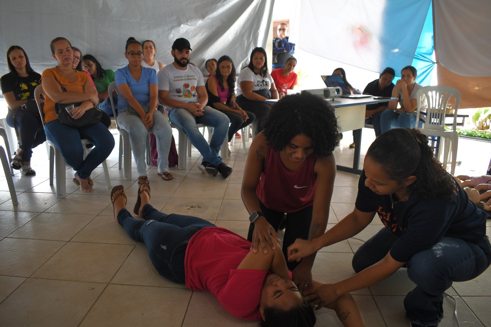 A oficina envolveu toda a equipe da creche: gestores, professores, funcionários da cozinha, da portaria e de serviços gerais. A capacitação ensinou medidas de socorro em situações de convulsão, desmaio, parada cardiorrespiratória, traumas leves, queimaduras e choques elétricos. O conteúdo foi apresentado de forma teórica e prática, com o apoio da Faculdade Estácio, que forneceu os equipamentos utilizados nas simulações.