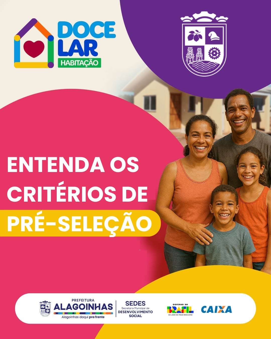 A Prefeitura Municipal de Alagoinhas informa que as famílias pré-selecionadas para o programa habitacional Minha Casa, Minha Vida foram definidas mediante parâmetros estabelecidos pela Portaria nº 738/2024, do Ministério das Cidades. Esse processo segue 11 critérios, que somam na pontuação, de acordo com o perfil de cada cidadão inscrito.