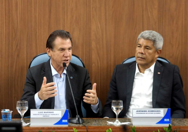 O governador Jerônimo Rodrigues (PT) participou da cerimônia de lançamento da ação, que aconteceu nesta quinta-feira (10), na sede da Federação das Indústrias do Estado da Bahia (FIEB), no bairro do Stiep, ao lado do ministro do Trabalho e Emprego, Luiz Marinho.
