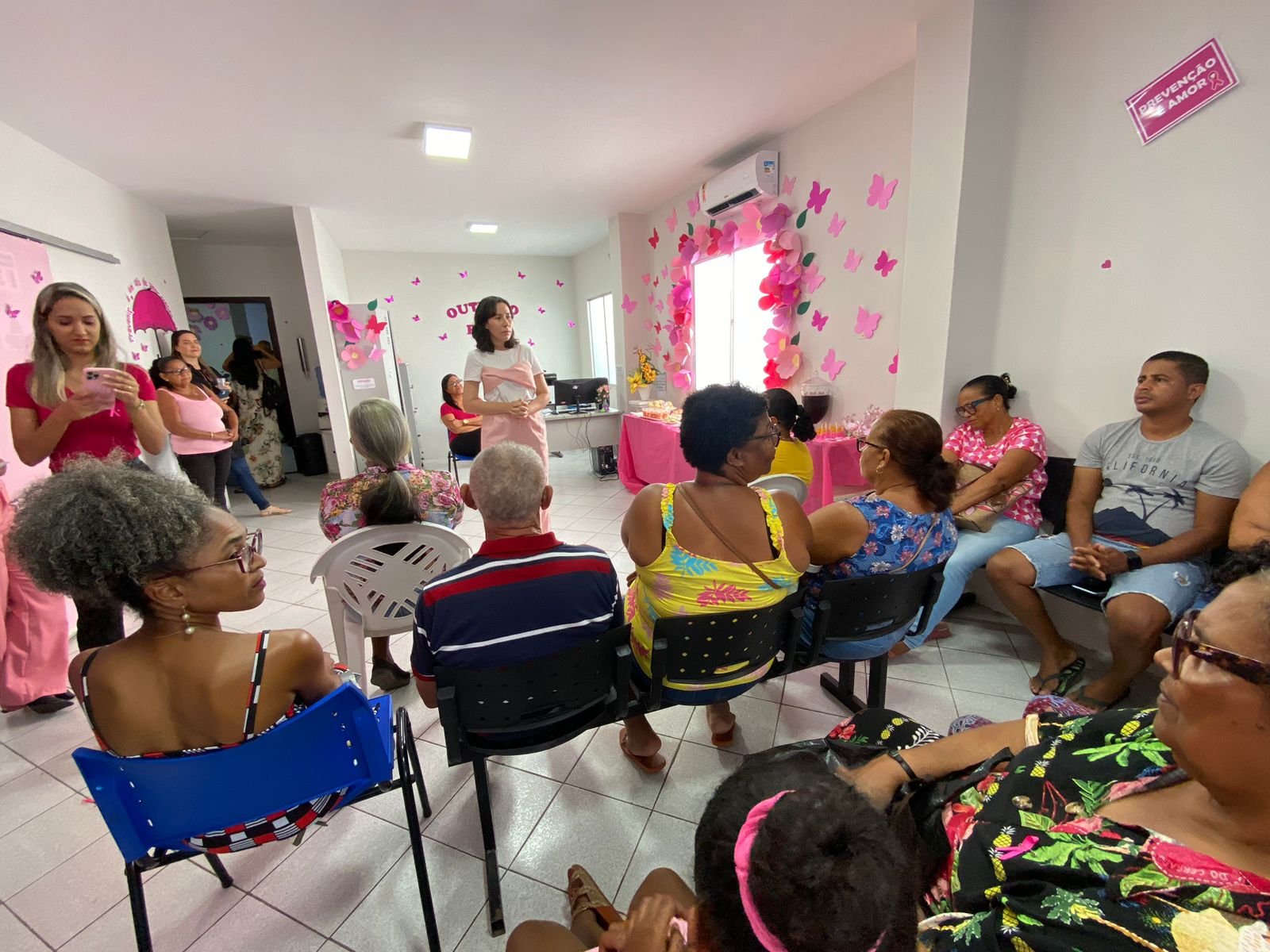 A Unidade de Reintegração faz parte da rede própria do município e trata, especialmente, da reabilitação motora, por meio da assistência fisioterápica. Os pacientes são captados via Central de Regulação da Secretaria Municipal de Saúde (Sesau). Atualmente, acontecem cerca de 300 atendimentos semanais, oriundos de agendamento. A coordenadora técnica da unidade, a fisioterapeuta Juliana Prata dos Santos Barbosa, pontuou que o Outubro Rosa se faz como um chamamento das pessoas a prestarem atenção em relação às questões do câncer de mama.
